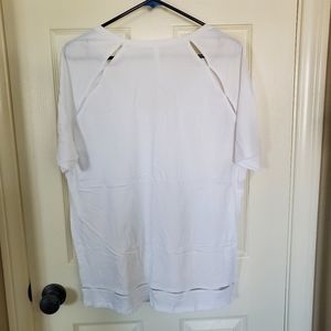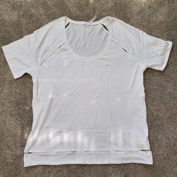 Brand new without tags. Has hole details on both front and back of shirt and bottom hem. Never been worn or tried on. Stored in spacebag.