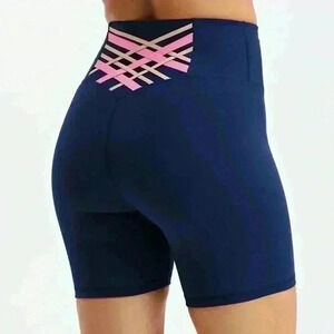 Fabletics Boost PowerHold® High-Waisted 6'' Short Navy Blue Pink Gym Workout Athletic SIZE XL