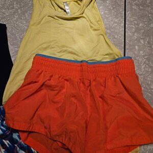 - Orange shorts with liner and back zip pocket, XS (approx. 3'' rise)
