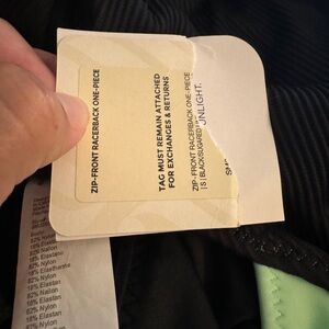 Fabletics Zip Front Racerback Black and green Swimsuit Size Small NWT