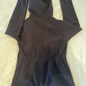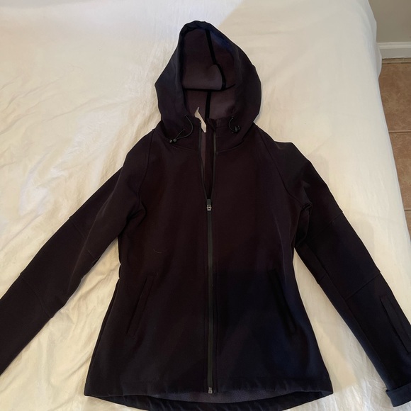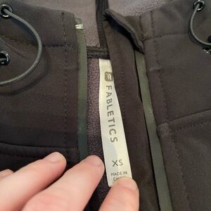 Fabletics. Size XS. Like new. Barely worn. Pictures show unique details such as zipper compartment on sleeve & Velcro adjustments on wrist width of the jacket. Hooded and has strings to adjust hood. This has a great material on the outside that is much like a rain jacket and it’s warm and soft inside. Great for different bouts of weather!