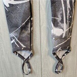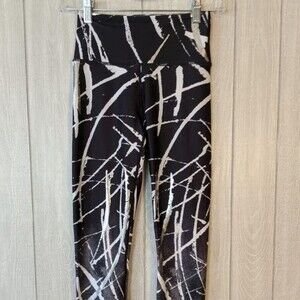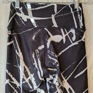 These amazing leggings from Fabletics are in excellent condition. They are a high waisted legging with a black and white splatter art deco vibe. They have stirrups on the bottom. Size XXS.