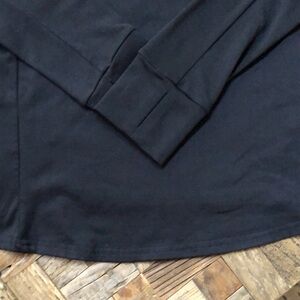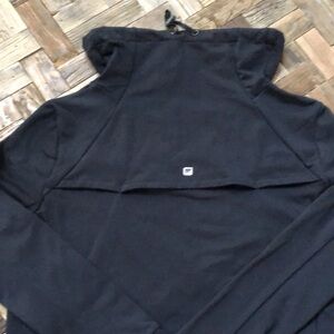 Fabletics Black Lace Pullover funnel neck sweater. Cotton blend, some stretch. Front lace detail. Neck drawstring. Mesh panel side on back. Side slits. Thumb holes. Lightweight and comfy! Runs a bit small. XS or Small