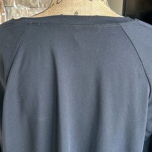 Fabletics long ruched sleeve black thin sweatshirt crewneck side slit slight hi lo