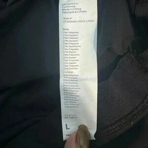Fabletics pants. Pull on with your elastic waistband. Black with gray and white stripe on the side. Zipper on the bottom. Excellent preowned condition. Polyester and elastane. Size large.