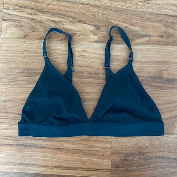 Comfy double lined and unpadded triangle bralette. In a beautiful deep emerald teal color. Excellent condition