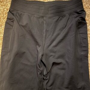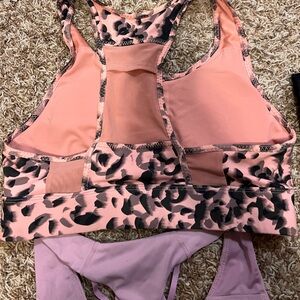 11!!! Pairs of leggings and 3 sports bras! A few high rise, some mid, lots of comfortable and fun leggings & bras. All size large or 10.