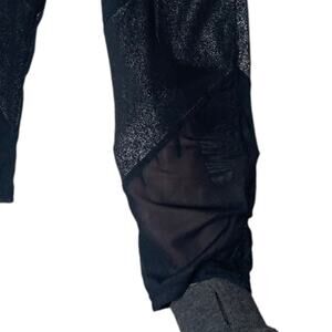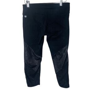 Fabletics capri active leggings sheer mesh silver sparkle panels pocket Small
