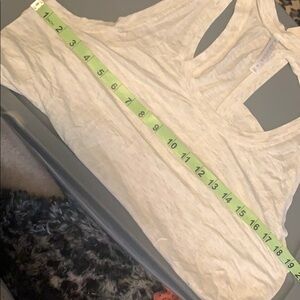 This is a super cute light gray heathered tank by Fabletics. It features a racerback style and a cropped fit. Super soft and great medium weight tank top. Size extra large, brand new with tags.