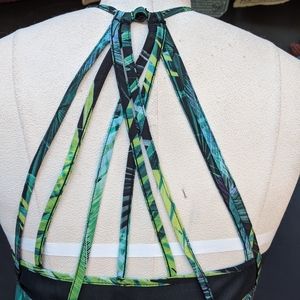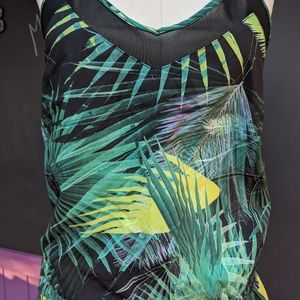 Cute romper, lightweight with a tropical leaf print.size small, NWT, never worn.perfect for working out or walking around in the sun! Elasticated waist, cute crossover detail at the back.