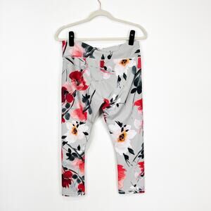 Fabletics grey silver pink floral 3/4 leggings size medium