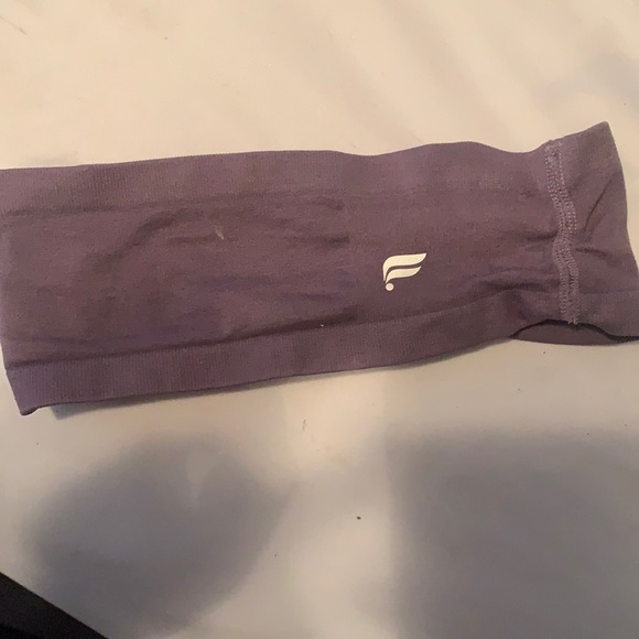 A purple fabletics headband.