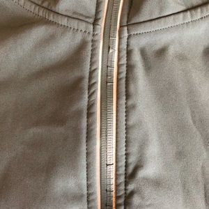 Used fabletics jacket! A light/ medium green color with a very small amount of wear and tear on the zipper, reflective strips along the zipper, all pockets have zippers, sleeves with adjustable Velcro, size Small!
