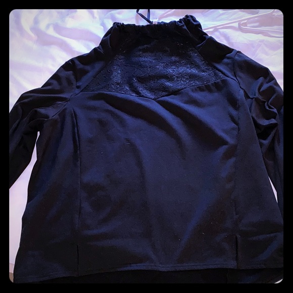 Gently used, funnel neck can be made as tight and loose as you want. Loose fitting bottom, floral embroidery on chest/neck area. Thumb holes, stretchy fabric, sits right at hips length wise. Xxl