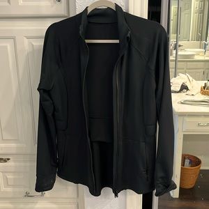 Black fabletics workout jacket. Hidden pocket in the back, great for running / light workouts.