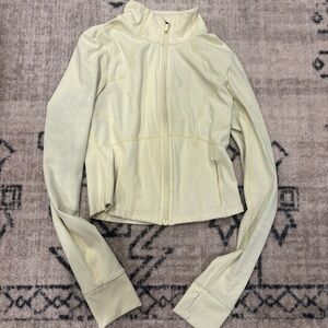 Yellow Fabletics crop jacket small. Washed with something blue and has a tint in some areas.