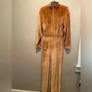 Fabletics jumpsuit size small gold velour long sleeve zip closure wide leg