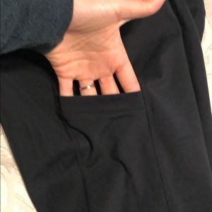 Solid black Fabletics leggings. Only worn 2 times. They just don’t fit me well. Very cute side pockets!