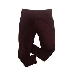 Burgundy or eggplant color fabletics leggings. Nice thick waistband with mesh detailing on the sides. Tag with size has been removed but appears to be size large. See photos for measurements. In great condition. Capri length.