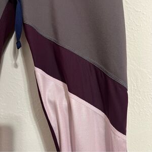 Fabletics mesh cutout drawstring workout leggings, gray pink and maroon size XS