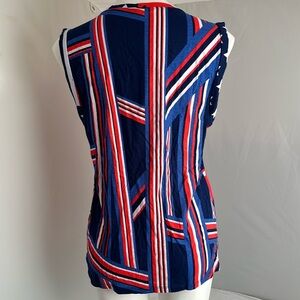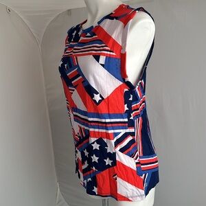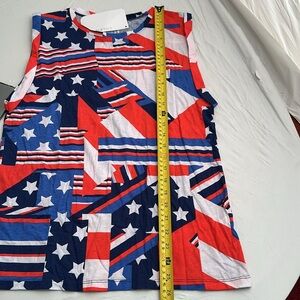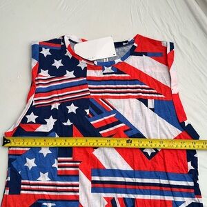 Fabletics red white and blue crew neck, rolled dropped sleeve, muscle t-shirt. Essential fun funky patriotic gear perfect for holiday or every day workouts or loungewear. Great for July 4th! NWT - No flaws. Smoke free home.