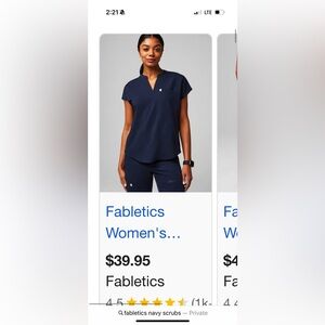 Galaxy Blue Fabletics scrub set,pants are high-rise medium reg. Length Shirt is Medium brand new never taken out of packaging, I bought wrong color and never returned them. Selling together for 25 bought separate for 50 total.