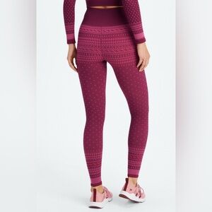 This is an adorable set! The fabric is stretchy and comfortable. It is warm enough to wear as a skiing outfit or to a yoga class on a colder day. It has never been worn – it is an excellent condition and looks new!