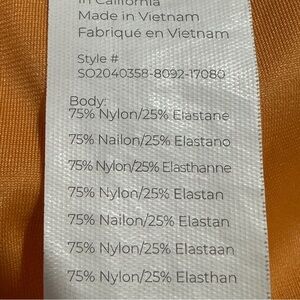 Bright and stylish women's tangerine colored yoga shorts with cute side trim and side pockets.75% nylon/25% elastane, stretch.