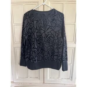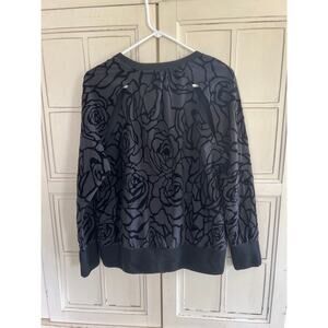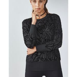 Fabletics size medium black long sleeve top with a velvet rose design. Great condition. Measures 21” from armpit to armpit and 26” long.