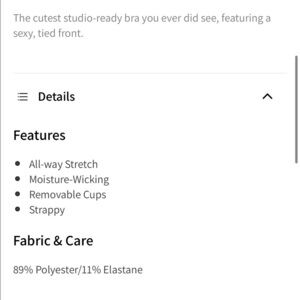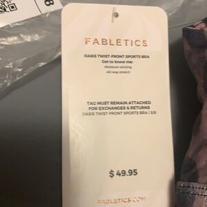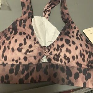Brand new with tags Fabletics spotted medium impact twist front sports bra. This has all way stretch and is moisture wicking. It has removable pads and is a nice soft feeling sports bra. Haven’t found one that I think looks cuter than this one. Super stretchy and nice wide band at the bottom to hold everything in place. Brand new with tags.