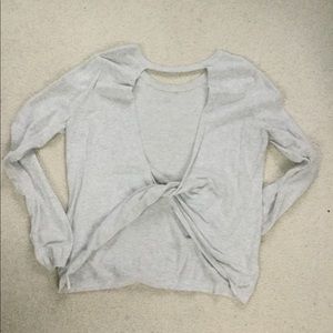 Fun open backed Fabletics sweater. This is an XXL, but, it sizes smalll... depending how you like it to fit.... I wear a large.. or a 10 - 12 Lululemon and this fits a little comfy and oversized.. my friend is a 16 and it hangs just nicely at the waist.