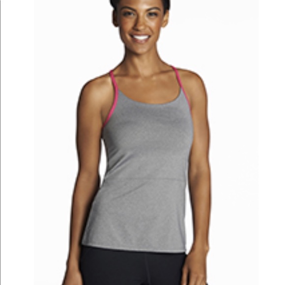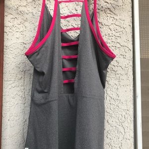 Fabletics tank. Grey with pink piping. Super sexy back. Excellent condition