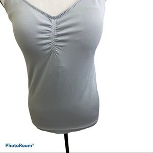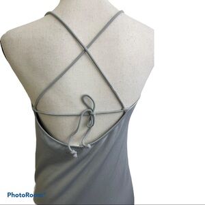 Fabletics tank top cami cross back straps and tie. Light grey. Medium. Pit to Pit=14” Length =18”