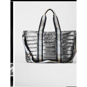 Fabletics the large quilted tote in grey metallic with Crossbody strap new witho