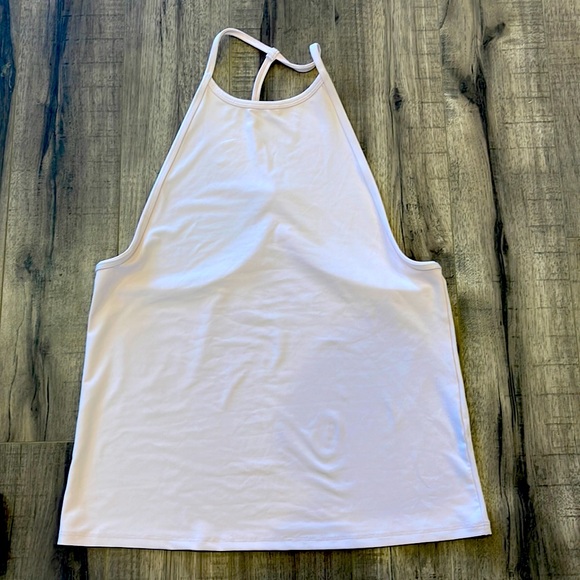 Pale pink top High neckline T-back Loose fitting A couple marks on it but barely noticeable Open to offers