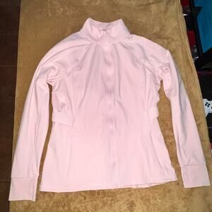 Fabletics trinity performance jacket pink zip up pockets thumb holes size XL