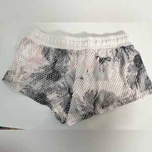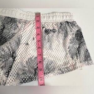 Fabletics white mesh, fully lined athletic shorts. Pink gray floral. Size XS