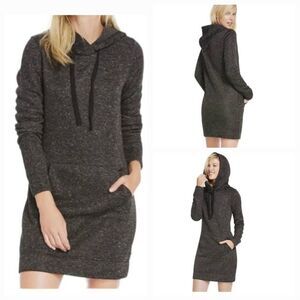 Fabletics womens XS heathered black hooded sweater tunic dress
