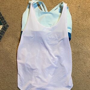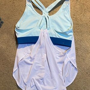 Fabletics workout tank tops that has a built in bra in white and teal it is flowy so very loose fitting no stains. In great condition.