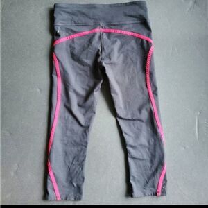 Black color Pink stitching details Ealstic waist and detail No stains No tears Size small 27 inches.full length 13.5 inch waist Smoke free and cat free closet