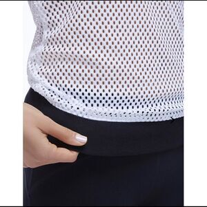 Fabletics Caymen open weave mesh tank top with black edging, banded hemline and overall stretch. Bust 36” and length 26”.
