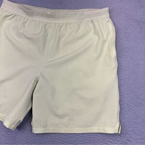 Fabletics Fundamental Shorts Mens XXL Green Yellow Lined 4 Way Stretch Active