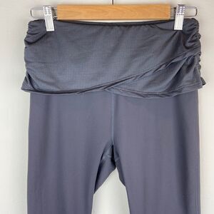 These leggings are in excellent condition. Featured with a high rise fit and mesh detailing at the waist. Gray in color. No size tag - please reference measurements. Please send any offers or questions!