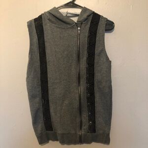 Fabletics Hoodie S Gray Crochet Sleeveless Vest. SB