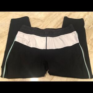 These are in great condition! Black with white band around top. Gray and mint green stripe down the sides. Size medium. Inseam is about 19 inches. Make me an offer!