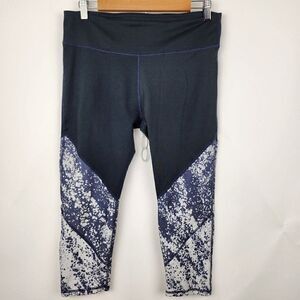 Fabletics Mid-Rise Brogan Capri Compression Leggings Gray Paint Splatter sz L