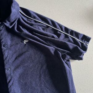 Fabletics Navy Terry Cloth Button Down Short Sleeve Shirt Mens M