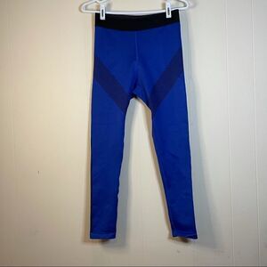 The full length leggings are in excellent pre-owned condition. They are rubbed and very thick , which means they wrong be see through at all. They are re also high waisted. There is a zip up pocket in the back. They are truly the perfect leggings for workouts!