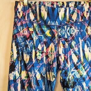 Fabletics Power-hold mid-rise capri leggings. Print is blue reef Salar. Geometric print.