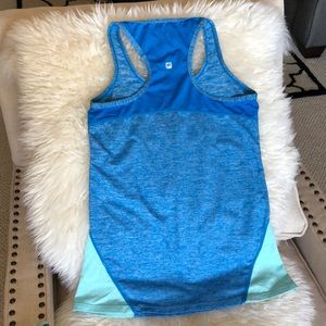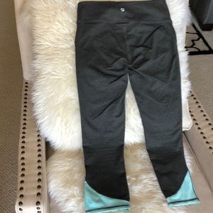 GUC set with tank top and cropped workout leggings. Soft and comfy material and super cute! Bottoms are charcoal with mint detail. Tank is heathered blue with mint detail.